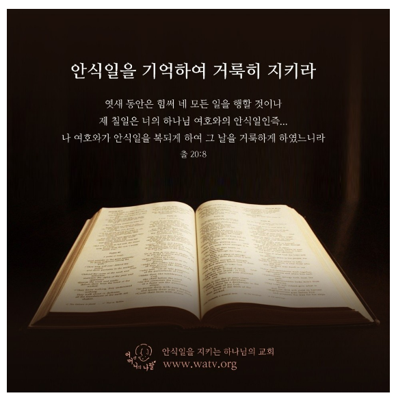 성경은 십계명 가운데 4번째 계명으로 안식일을 기억하여 거룩히 지키라고 알려주고 있습니다.