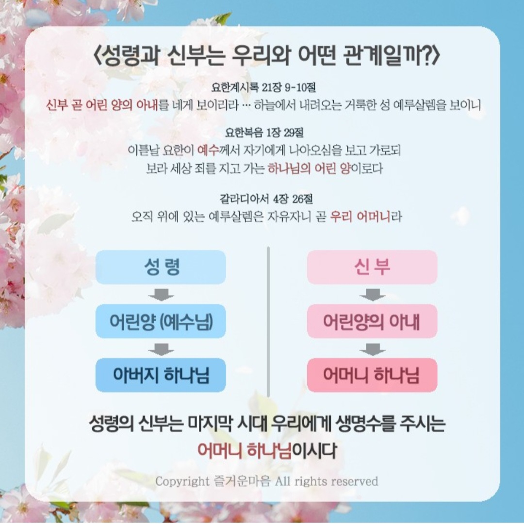 이 신부는 어머니 하나님임을 알 수 있습니다.