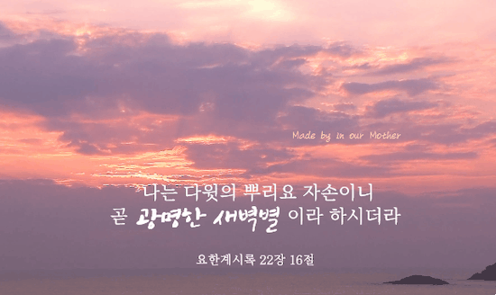 나 예수는 교회들을 위하여 내 사자를 보내어 이것들을 너희에게 증거하게 하였노라 나는 다윗의 뿌리요