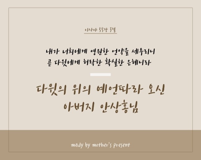 내가 너희에게 영원한 언약을 세우리니 곧 다윗에게 허락한 확실한 은혜니라