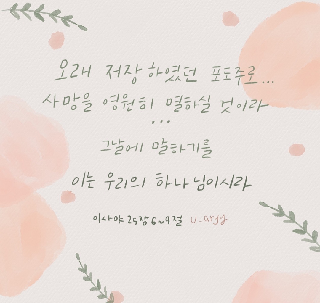 - 만군의 여호와께서 이 산에서 만민을 위하여 기름진 것과 오래 저장하였던 포도주로 연회를 베푸시리니 … 모든 민족의 그 가리워진 면박과 열방의 그 덮인 휘장을 제하시며 사망을 영원히 멸하실 것이라 … 그날에 말하기를 이는 우리의 하나님이시라 우리가 그를 기다렸으니 그가 우리를 구원하시리로다