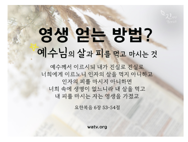 성경은 우리들이 예수님의 살과 피를 먹고 마셔야지만 영생을 얻을 수 있다고 알려주고 있습니다.