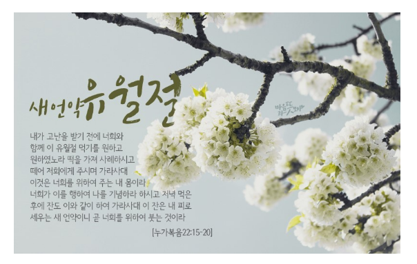 이에 하나님의교회에서는 성경의 가르침 그대로 성력 1월14일 저녁에 유월절을 지키고 있습니다.